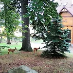 Nimfa-Willa Na Wylacznosc Dla Grup, som ligger inom 10 minuter med bil från Szklarka Waterfall, har vattenpark, soldäck och solterrass, som garanterar en minnesvärd vistelse. Villan, som erbjuder en privat parkering, ligger i en stuga.